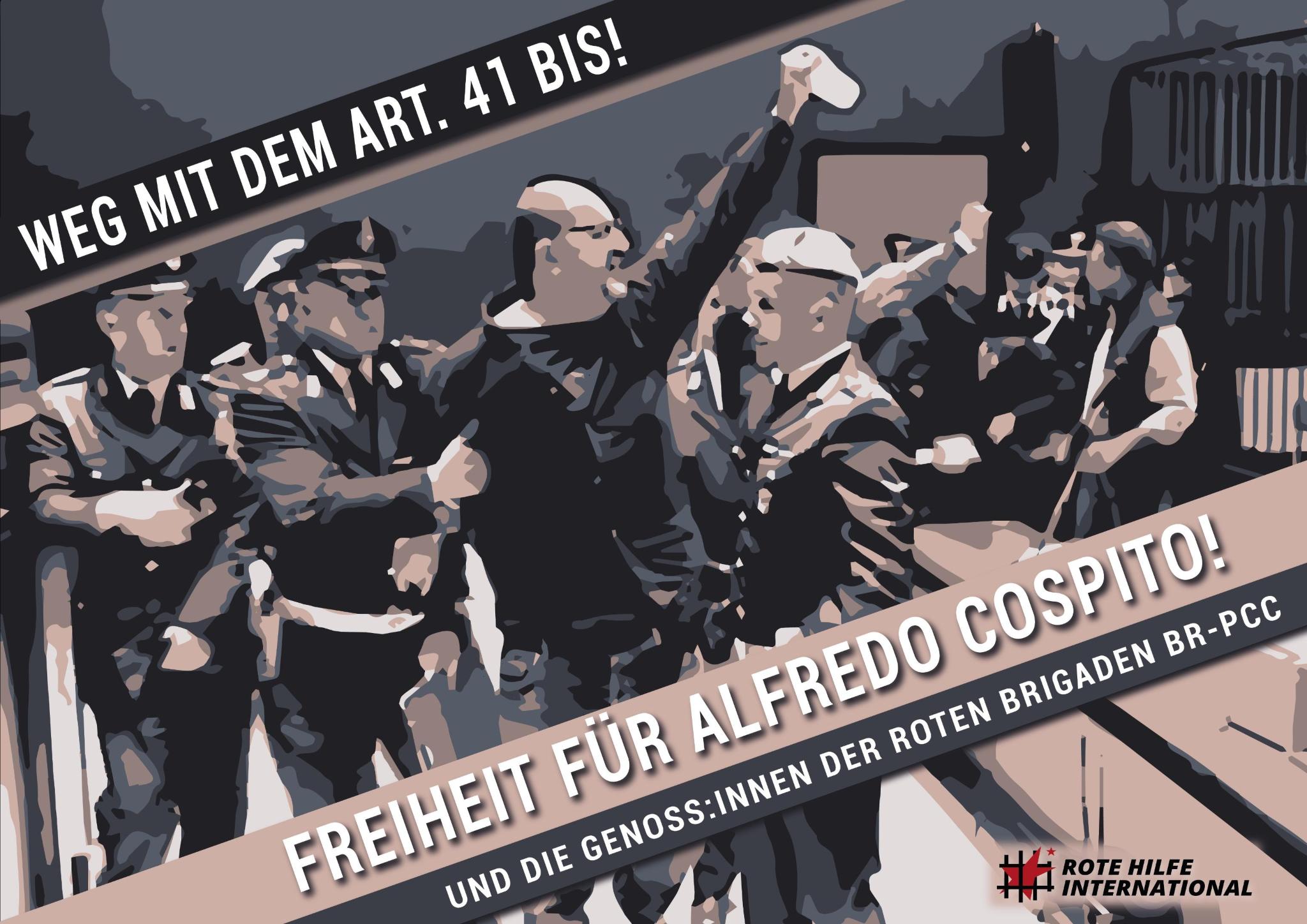 41bis ist das härteste Isolationshaftregime in Europa. Ursprünglich eingeführt, um Mafiamitglieder daran zu hindern, ihre Aktivitäten vom Gefängnis aus fortzusetzen, wurde es bald auf revolutionäre Gefangene ausgeweitet, um ihnen jegliche Interaktion mit der Außenwelt zu untersagen. So sind drei Gefangene der Roten Brigaden-PCC, Nadia Lioce, Roberto Morandi und Marco Mezzasalma, seit 17 Jahren diesem System unterworfen. Der Wert ihres Widerstandes muss daran gemessen werden, dass sie sich nur politisch ergeben müssten, um aus diesem Regime herauszukommen.