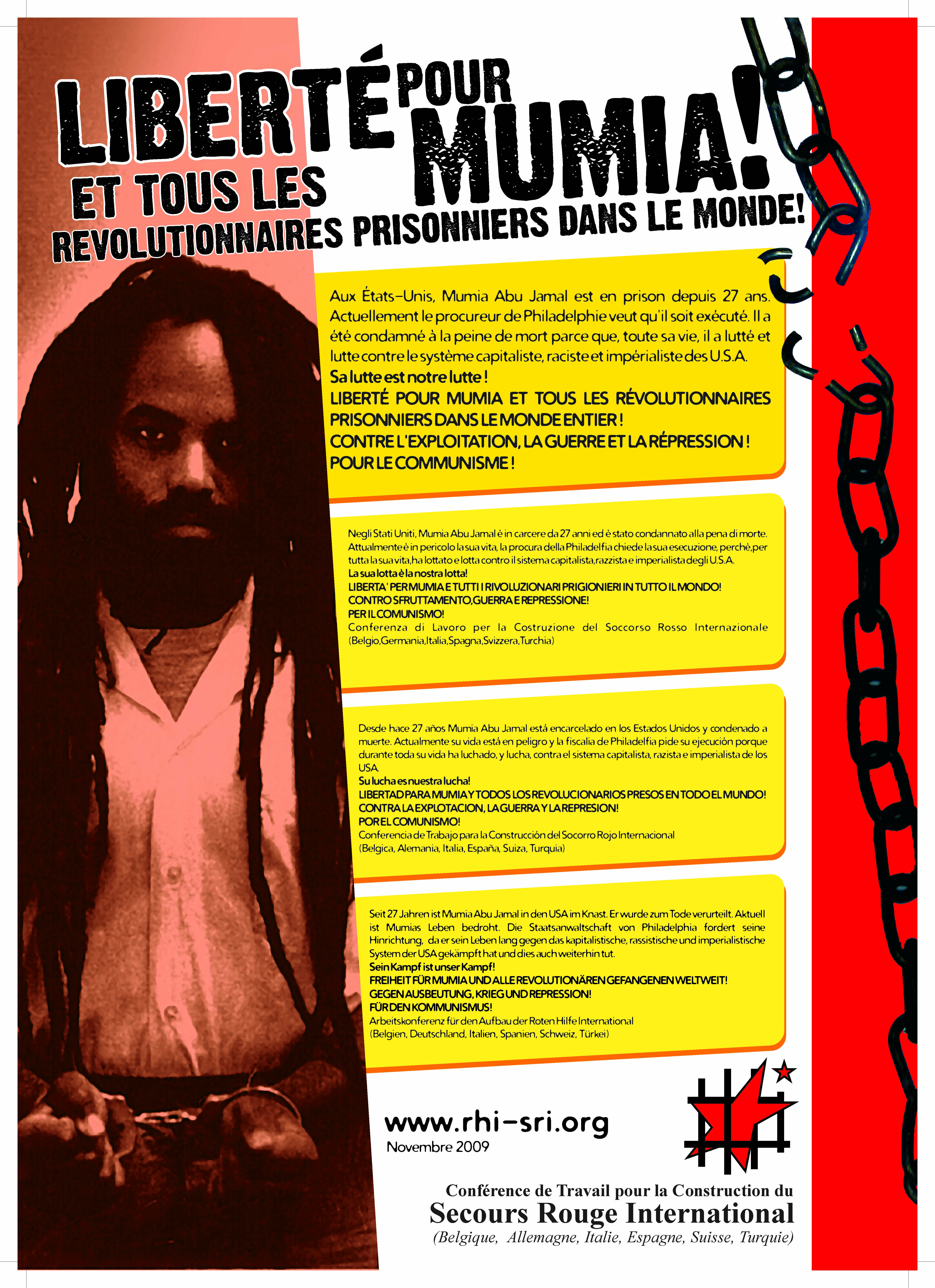 Mumia Abu Jamal comes from the African American Black movement. When he was 15 years old, he was responsible for the information in the Philadelphian Chapter of the Black Panther Party. He became a journalist and got his nickname “The voice of the voiceless”, he denounced the violent repression targeting the Black community in Philadelphia. On December 9, 1981, Mumia was heavily wounded during a shooting. He was sentenced to death for the murder of a policeman during a trial where the evidences of his innocence were hidden. Legal struggle, popular mobilizations and international solidarity transformed the death sentence into a life sentence. In jail, Mumia keeps writing and srving the cause of Black Liberation.